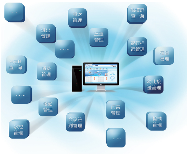 系統覆蓋考勤、餐廳消費、購物、車輛進出、人行通道、預約系統、會議、班車、門禁、請假出入、數據監控、信息發布、查詢系統等多個應用子系統,所有子系統可實現信息共享,統一服務于整個企業一卡通平臺。